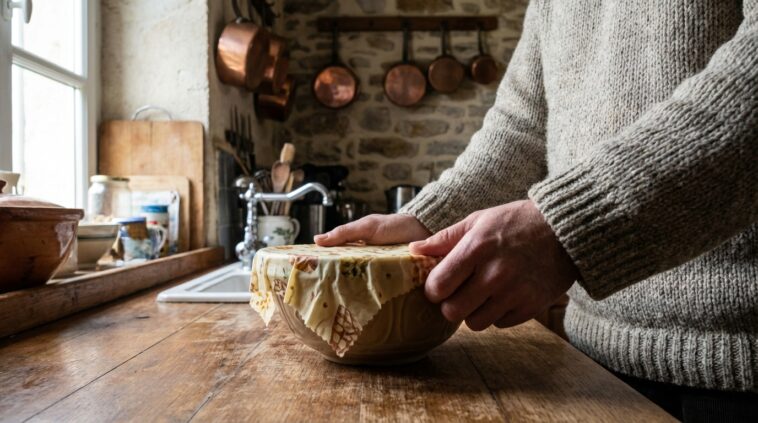 Vous ouvrez votre tiroir et le constat est toujours le même : ce rouleau de film plastique qui se déchire mal, colle aux doigts et finit à la poubelle après une seule utilisation. Imaginez une alternative capable de conserver vos restes, vos fruits entamés ou vos sandwichs, lavable à l’infini et que vous pouvez fabriquer vous-même pendant que votre café coule. En cette fin d’hiver, alors que nous cherchons tous à alléger notre quotidien, voici comment transformer de simples chutes de tissu en alliés écologiques indestructibles grâce à une technique méconnue et ultra-économique.