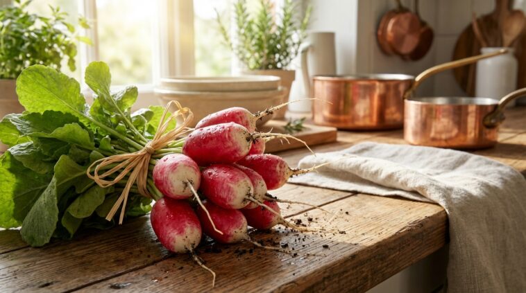 Acheter intelligemment signifie bien souvent utiliser un produit dans son intégralité. Peu de gens s’en rendent compte, mais les fanes de radis représentent environ 60 % du poids total d’une botte achetée au marché. En d’autres termes, demander systématiquement au primeur de s’en débarrasser revient mathématiquement à payer pour jeter plus de la moitié de son achat ! Un tel gâchis est d’autant plus regrettable que cette verdure méconnue cache un profil nutritionnel absolument redoutable pour affronter les changements de saison.