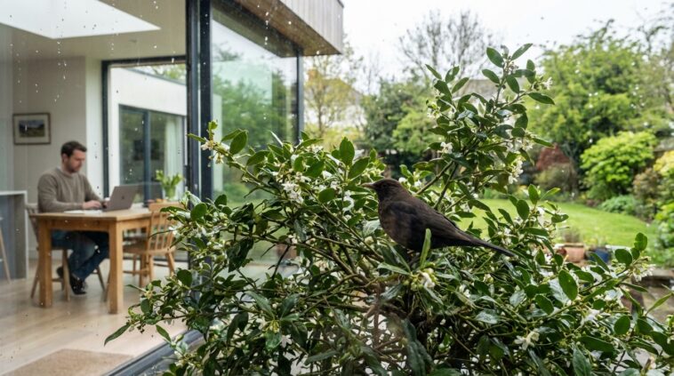 Ces petites parcelles touffues agissent comme d’épaisses murailles isolantes. La densité du feuillage joue le rôle de bouclier visuel et physique, empêchant toute intrusion de l’extérieur. À l’inverse des espaces aérés, une haie un peu sauvage ou un massif d’arbustes entremêlés peut rapidement devenir un refuge idéal, réhabilitant l’instinct de dissimulation inscrit dans l’ADN des merles.